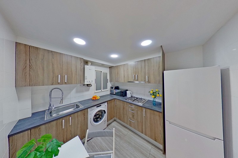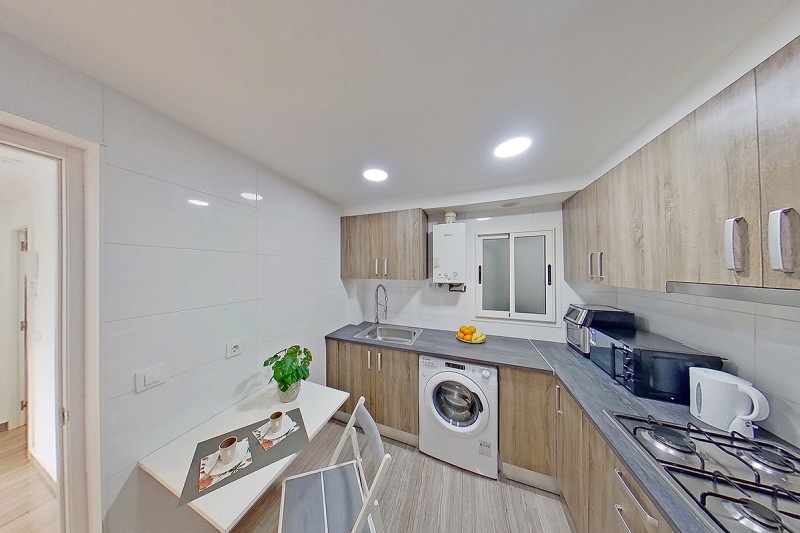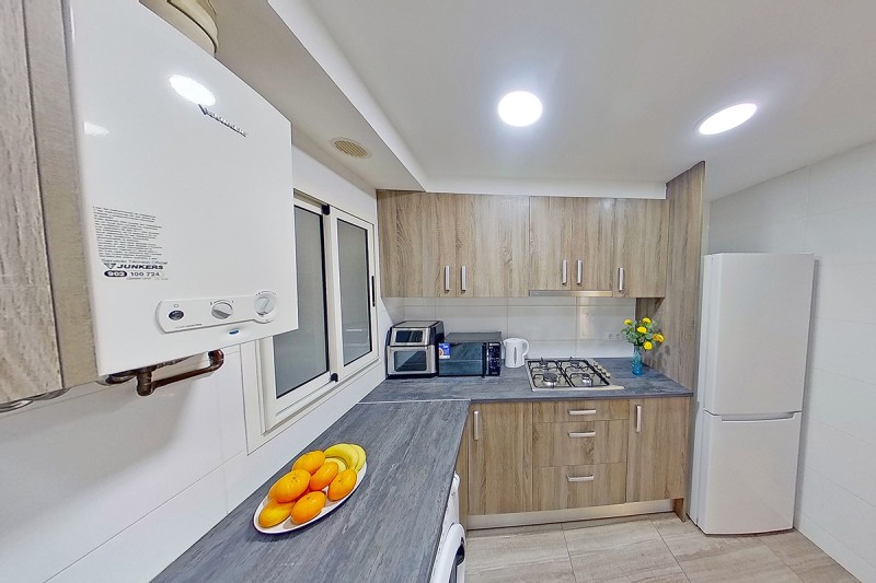 Una vez que llegues, te encontrarás con un piso soleado, acogedor y acabado de reformar por completo, con un balcón para disfrutar de las vistas y la puesta de sol. También tendrás una cocina completamente equipada para que puedas cocinar lo que te apetezca, ya sea que quieras probar la deliciosa gastronomía local o prepararte tus comidas.